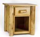 Crafted of Pine with tongue & groove sides. Accented corners and drawer pulls with Cedar Logs. Euro glide drawer slides. Except for knobs, it is fully assembled. Available in Natural (unfinished), Clear, Light Honey, and Vintage Whiskey Finish.