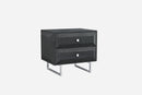 Keep your bedtime essentials always by your side with our stainless steel nightstand. It comes with two drawers for storing your personal items, and its top is a perfect surface for your lamp. Each drawer has a chrome handle and self closing runners for easy and quiet closing. Its gray finish is simply alluring and adds to the ambience of your room decor. Dimensions: 27" X 20" X 23".