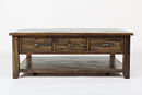 This cocktail table has a sleek and opulent look that can easily complement while drinks and magazines are lying on it. Wood constructed frame has a superb dakota oak(brown) finish giving a subtle texture and sleek style to the table. This appealing table features three drawers and one shelf beneath the drawers for ostentatious look. Bring this to create a cosy corner with a couple of matching chairs to have long hours chit chatting with friends. This cocktail table is must have to give your home interior a stylish yet mid-century feel. Dimensions: 50X30X19
