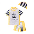 3 Pcs Boys Patchwork Swimsuit And Cap