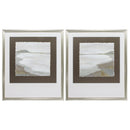 This set of deckled neutral prints are double matted and framed under glass with a complimenting silver molding. They come ready to hang and are both made in the USA!