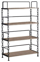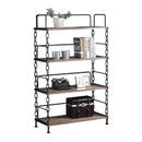Bookshelf - 36" X 16" X 59" Rustic Oak And Antique Black Particle Board Bookshelf