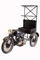 A unique vintage Tri-Motorcycle Bar that offers sufficient shelving areas to display your beverages, wines, and stemware. It also has a flat surface bar top to serve your favorite pour.