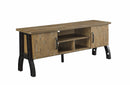 This 60" TV Stand with 2 cabinet & 3 open Shelves has a simple yet eye-catching design that is matched with incredible durability. The TV Stand features a simple body that makes it perfect for any space. A spacious tabletop, 3 open shelves and two cabinets with door that provide ample storage space for all of your media needs. A rustic oak brown finish allows it to easily complement your homes decor.