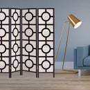 Our jute inlay screen brings to you stylish and creative ways of partitioning your space. It is excellently multifunctional for practical use as well as decorative purposes. This 4 panel brown folding screen is the preferred choice if you're trying to create a more private space for yourself. It also serves as an extra space for storage. The fascinating designs on the material does not only blend with any decor but makes the screen a focal point wherever it is placed. It comes with an easy fold mechanism for convenient carriage and packing. Made of wood and available in the dimension of 68 by 1 by 70 inches.