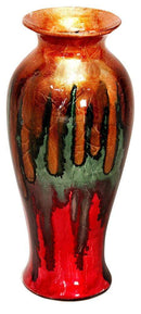 Vase - 8'.75" X 8'.75" X 21'.25" Gold, Green, Blue And Red Ceramic Foiled & Lacquered Ceramic Vase