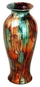 Vase - 8'.75" X 8'.75" X 21'.25" Turquoise, Copper And Bronze Ceramic Foiled & Lacquered Ceramic Vase