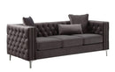 Enhance your home with this accent sofa to add comfort and visual appeal to your living room. The soft velvet fabric can be matched to any decor and tones to create a pretty look to your beautiful living room. The accent piece provides a soft and cozy seating. The seat can be integrated in your home or office to complete any existing setting. It is beautifully crafted and designed in an adorable manner with button tufted design to set unique profile. It features vintage style, chrome finish, metal bracket legs, and tight back and loose seat cushion. Get this unforgettable experience with our sofa in your home today.