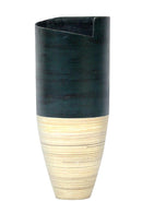 Tall Vase - 9" X 9" X 20" Distressed Blue & Natural Bamboo Spun Bamboo Vase