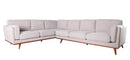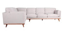 Solid hardwood walnut finish base defines the lines of the Camden Sectional. Engineered with clean styling and loose cushion comfort, this updated mid-century style is a modern classic. Camden collection is the result of a team of talented stylists and designers. Our products are crafted with the finest materials for long lasting quality and comfort. Camden Sectional was created as a two piece unit in order to be delivered and assembled into almost any space with minimal effort, creating L-shape living space. The durable trend-setting cloud taupe cover is perfect for any environment. Modern mid-century design combined with deep seat comfort define this incredible sectional value.