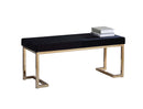 This bench features a trending combination of sleek and contemporary style, with black padded seat and gold finish metal base. The modern lines of the base with its open return base and simple form top, make for an modern feel and show off key elements of modern. It will provide an extra space either for comfortable seating or placing your stuff.