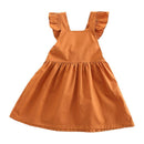 Baby Girls Cotton Plain Knot Back Ruffle Design Dress