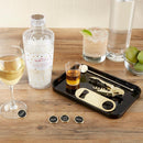 Looking for a bar accessories gift set that will shake things up? Look no further than These Barware Gift Set! This set of bar accessories, features a cocktail shaker, cocktail stirrer, corkscrew and everything else you need to make the most of your event. The set comes perfectly packaged inside the cocktail shaker to create the perfect gift for any house warming, birthday, bachelorette or bridal shower. Features and Facts: Gift set features clear acrylic cocktail shaker and removable measuring shot glass cup with ounces and milliliters; shiny gold metal bottle opener, cocktail stirrer and waiter's style corkscrew; gold metal charms with gold wire rings that read "Cheers", "Salud", "Prost" and "A Votre Sante".Hand wash only.Stirrer measures: 1" w x 7" h x 0.1" d.Bottle opener measures: 1.6" w x 4.75" h x 0.1" d.Corkscrew measures: 1" w x 4.75" h x 0.5" d.Wine charms measures: 1" w x 2" h x 0.1" d.Cocktail shaker measures: 3.3" w x 8.75" h x 3.3" d.Packaged gift set measures 3.3" w x 8.75" h x 3.3" d.