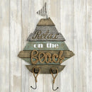 This stunning distressed-look boat-shaped sign will create an exciting focal point on a wall in a nautical themed room.
