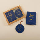 These Bon Voyage Getaway Gift Set isn't only a great newlywed gift, but the perfect guest gift for destination weddings, bachelorette parties, and more! The gift set includes a passport cover and luggage tag in dark blue with shining gold details. All packaged in an open face gift box, the Bon Voyage Getaway Gift Set comes ready for gifting! Features and facts:Faux leather passport cover with gold thread against navy. "Bon Voyage" is spelled out on the front of the passport cover above a heart-shaped airplane path and gold foil airplane. Navy, faux leather luggage tag with gold thread and gold eyelet on top with that holds brown leather attachment loop. A gold foil compass design showing N, E, S, and W embossed in gold foil on front of luggage tag, back has clear window with information card.Set measures 7.71" w x 0.86" d x 5.59" hSold as a set (1 Passport cover 1 Luggage Tag)