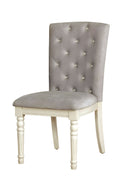 Button Tufted Fabric Upholstered Wooden Side Chair, Pack of Two, White and Gray