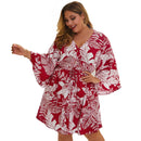 Casual Summer Unique Leaf Print Flare Sleeve Women Plus Size Loose Dress