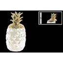 Ceramic Pineapple Canister with Gold Lid- White- Benzara