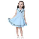 Children New Arrival Navy Style Sleeveless Lovely Bowknot Pleated Princess Dress