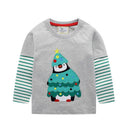 Christmas Boys Cotton Penguin Print Patchwork T-shirts
