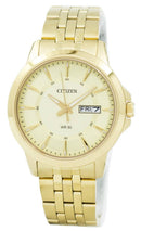 Gold Tone Stainless Steel Case Gold Tone Stainless Steel Bracelet Quartz Movement Mineral Crystal Champagne Dial Luminous Hands And Markers Day And Date Display Pull/Push Crown Solid Case Back Fold Over Clasp With Push Button 50M Water Resistance Approximate Case Diameter: 41mm Approximate Case Thickness: 9mm
