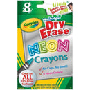 Washable Dry-Erase Crayons in 8 vibrant neon colors! Erases cleanly but won't easily brush off dry-erase surfaces. Washes easily from skin and fabrics. No odor, no caps to lose and they won't dry out. Includes built-in sharpener.