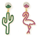 Creative Summer Asymmetric Cactus Flamingo Shape Women Drop Earrings