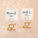 These Modern Romance collection brings style to every guest with the Cupid's Arrow Gold Place Card Holders sold in a set of 6! The gold, romance themed place card holders come with matching place cards, each displayed via a spiral wire on top of the heart shaped based. The Cupid's Arrow Place Card Holders feature a classic and versatile open heart with arrow design! Features and facts:Gold resin open heart with arrow place card holder base, gold metal spiral wire holds included gold and white cardstock place cards upright on top of the heart. Sold in sets of 6Matching place cards includedPlace card holder measures 1.49" w x 2.08" h x 0.35" d, place card measures 2.28" w x 2.12" h x 0.003" d