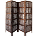 Bring aesthetic charm to your living space with the addition of this beautiful room divider with circular cutout pattern. Connected through metal hinges, it features four panels which you can access as per your desired purpose. When not in use you can easily fold it and keep aside. It is constructed using Mango wood and MDF, accented with brown finish that perfectly blends with all d�cor styles. Set this room divider in any space conscious ensembles to make your own private space.