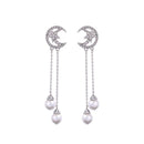 Elegant Moon Imitation Pearl Design Women Rhinestone Party Earrings