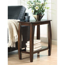Add simple, sleek style to your living room with this chairside table. Tapered, bowed legs create a modern-contemporary design, with a bottom shelf for just the storage space to keep your home organized. Finished in a dark walnut( Brown) hue to match with any home decor.