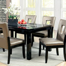A combination of straight lines and solid black makes this dining table a perfect fit for any contemporary home. The table top has an embedded mirror at the centre, providing it a touch of style and elegance.
