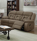 Elite choice for your contemporary living room this trendy and modish motion sofa is gracefully upholstered in brown fabric with unique and lovely base ball designing. The sofa has plush and generously tailored cushioned seat, back and adjustable footrest for providing ultimate comfort. It also features double stitch white thread design for added beauty. In no time this matchless sophisticated sofa will transform your living room's whole look elegantly and surprise you by taking you to the reclining position, lending you utter comfort and relaxation!