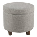 Fabric Upholstered Round Wooden Ottoman with Lift Off Lid Storage, Light Gray
