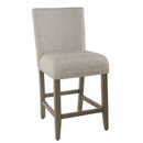 This counter stool would be a perfect addition to your living space. The stool has wooden constructed framework which provides sturdiness to the piece. The fabric upholstered back and seat provide utmost comfort. The nail head trimming in the front of the seat adds to its look. The light gray color makes it suitable for all kinds of decor style. The stretchers act as footrest. The legs and wooden stretcher of the barstool comes in a brown color finish which would add character to your bar area.