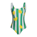 Fashion Big Round Neck Lemon Green Color Stripes Tank Swimwear One Piece For Women Design Sport Swimwear