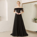 Fashion Black Color Women Off-shoulder Feather Edging Floor Length Evening Party Dress