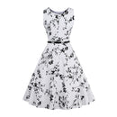 Fashion Hot Beautiful Sleeveless Belt High Waist Flower Dress Woman Design Floral Vintage Dress