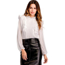 Female Simple Style Solid Color Stand Collar Long Sleeves Flouncing Blouses