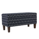 Geometric Patterned Fabric Upholstered Wooden Bench with Hinged Storage, Large, Blue and Brown