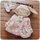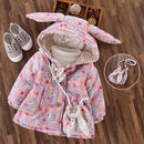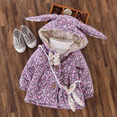 Girls Floral Print Cute Rabbit Ear Hooded Princess Bow Jacket Coat With Purse