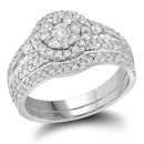 Description 14kt White Gold Women's Round Diamond Double Halo Bridal Wedding Engagement Ring Band Set 1.00 Cttw Gemstone Details 1.00 Carats total weight --- 1/8 carat center solitaire Specifications 14kt White Gold äó¢íó_Combined diamond weight of 1.00 carats total weight represents a range of 0.95 - 1.05 cts. t.w.