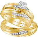 Description Yellow-tone Sterling Silver His & Hers Round Diamond Solitaire Matching Bridal Wedding Ring Band Set 1/5 Cttw Gemstone Details 1/5 Carats total weight --- .01 carat center solitaire Specifications Sterling Silver