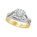 Description 14kt Yellow Gold Womens Princess Diamond Twist Bridal Wedding Engagement Ring Band Set 1.00 Cttw Gemstone Details 1.00 Carats total weight --- 1/3 carat center solitaire Specifications 14kt Yellow Gold �Combined diamond weight of 1.00 carats total weight represents a range of 0.95 - 1.05 cts. t.w.