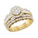 Description 14kt Yellow Gold Women's Round Diamond Cluster Bridal Wedding Engagement Ring Band Set 1-1/2 Cttw Gemstone Details 1 & 1/2 Carats total weight Specifications 14kt Yellow Gold äó¢íó_Combined diamond weight of 1 & 1/2 carats total weight represents a range of 1.46 - 1.58 cts. t.w.