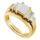 Description 14kt Yellow Gold Women's Princess Diamond Cluster Bridal Wedding Engagement Ring Band Set 1/2 Cttw Gemstone Details 1/2 Carats total weight Specifications 14kt Yellow Gold _Combined diamond weight of 1/2 carats total weight represents a range of 0.46 - 0.58 cts. t.w.