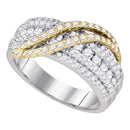 10kt White Gold Women's Round Diamond Yellow-tone Crossover Stripe Band Ring 1.00 Cttw - FREE Shipping (US/CAN)
