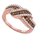 10kt Rose Gold Women's Round Cognac-brown Color Enhanced Diamond Crossover Band Ring 3/4 Cttw