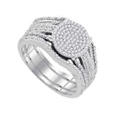10k White Gold Women's Round Diamond Cluster Bridal Wedding Engagement Ring Band Set 3/8 Cttw
