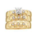 Description 10kt Yellow Gold His & Hers Round Diamond Solitaire Matching Bridal Wedding Ring Band Set 1/8 Cttw Gemstone Details 1/8 Carats total weight --- 1/12 carat center solitaire Specifications 10kt Yellow Gold _Combined diamond weight of 1/8 carats total weight represents a range of 0.12 - 0.14 cts. t.w.